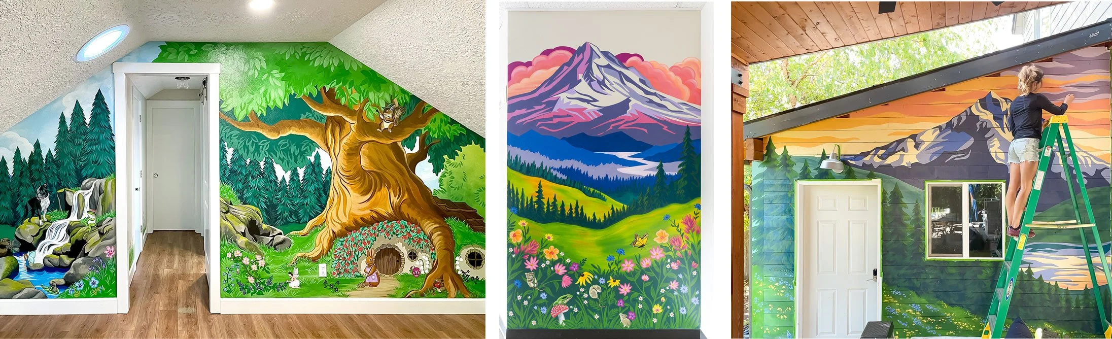 Most of my mural projects are located in Washington and Oregon, but I’m open to traveling for the right project. Additionally, I offer shippable murals, painted on 1/4” sanded plywood panels. These custom panels are created in my studio and can be shipped nationwide, providing a flexible option for those outside my primary service area. Contact me to discuss travel opportunities or learn more about my shippable murals!